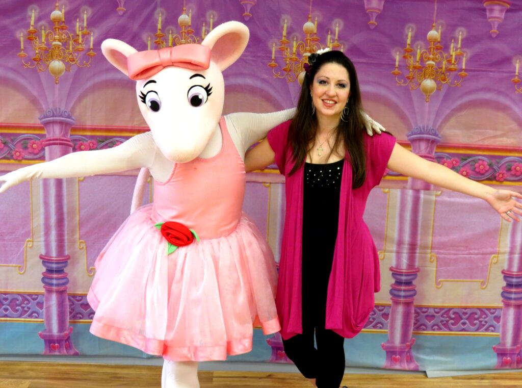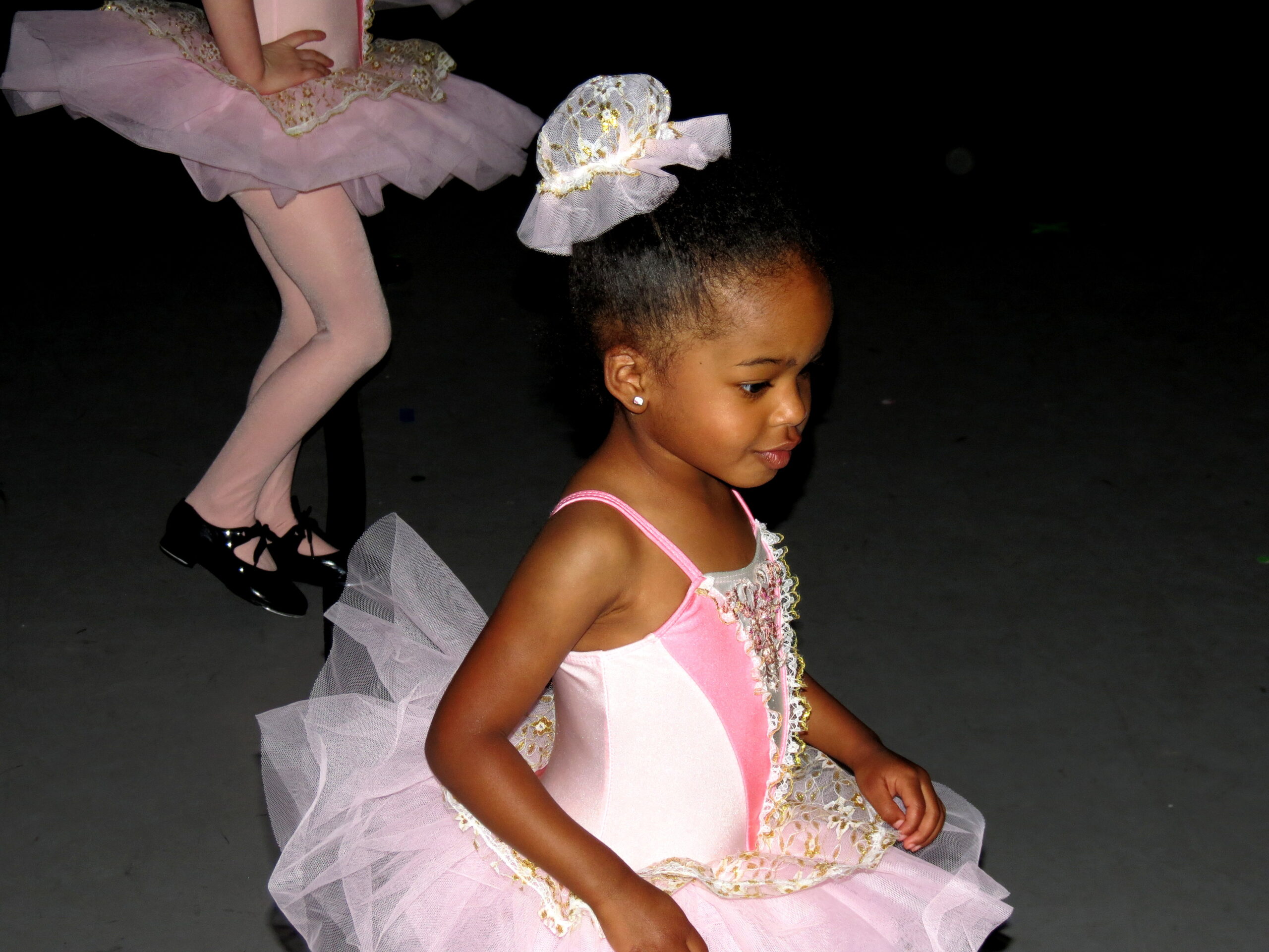 - Ballet slippers and ballet pink tights (light pink)