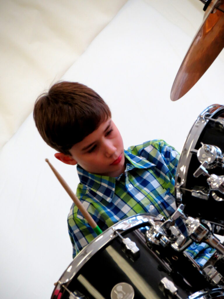 We offer a variety of drum and percussion lessons, which include but are not limited to drum set, symphonic percussion, mallet instruments, and Afro-Caribbean drums. Students who take drum lessons with us learn to play on a drum kit. Most students are ready for drums around age 8 due to their size limitations of reaching the foot pedals and high hats. Our lessons focus on the ability to identify rhythm and the use of proper technique such as stick control, rudiments, and four-way drum set coordination. We have many performance opportunities throughout the year. We also offer a Rock Camp during the summer for students interested in learning to play within a small group of mixed instruments.